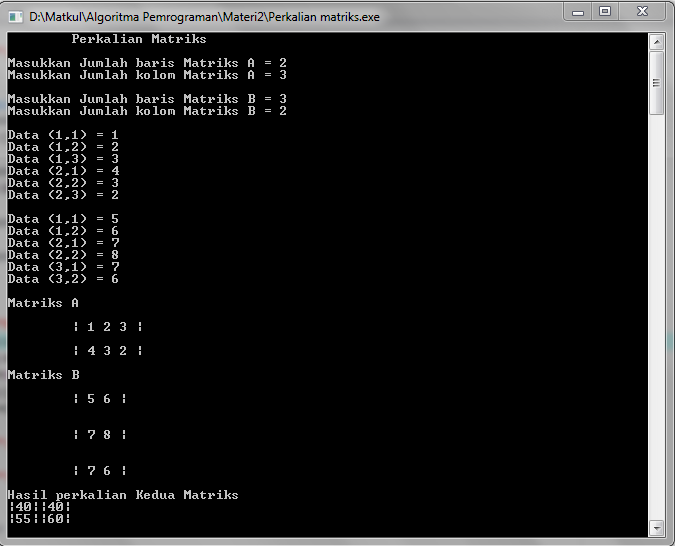 Nahhh, kemarin kan saya sudah kasih tau bagaimana caranya membuat transpose matriks dengan array 2 dimensi. Sekarang saya akan kasih tau kembali buat para sobat blogger tentang cara membuat perkalian matriks di C++...