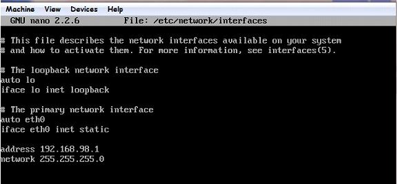 - Pertama buka file "/etc/network/interfaces" lalu ganti IP address seperti berikut