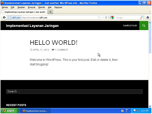 - Berikut adalah tampilan wordpress yang sudah dibuat.