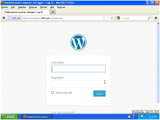- Untuk mengakses halaman admin dapat melalui https://wordpress.nama(raffi).com/wp-login.php. Maka akan muncul tampilan seperti gambar dibawah.