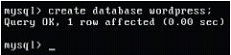 - Buat database pada user root dengan perintah “mysql –u root –p” lalu buat dengan nama wordpress.