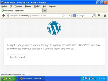 - Jika berhasil akan muncul seperti gambar dibawah. Lalu klik “Run the Install” dan ikuti perintah selanjutnya untuk membuat nama situs, user admin dan password admin.