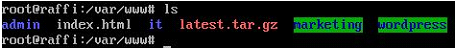 - Pertama download CMS wordpress terlebih dahulu dengan perintah “wget http://wordpress.org/latest.tar.gz”. Berikut adalah hasil file yang telah di download.